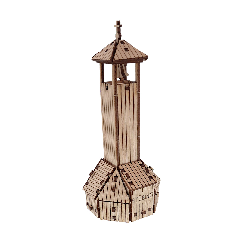 The clock tower plug-in kit made of 59 pieces of beech plywood is faithfully reproduced down to the smallest detail.