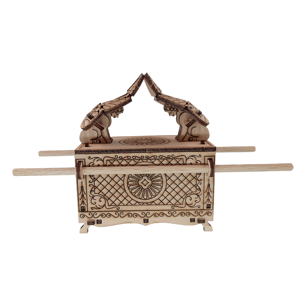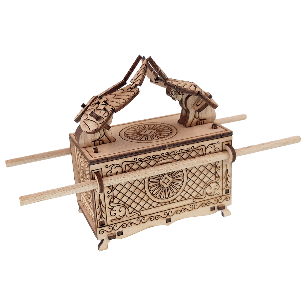 Der Bundeslade Steckbausatz aus 40 Teilen Buchensperrholz und Buchenstäbchen ist bis ins kleinste Detail wahrheitsgetreu nachgebaut.