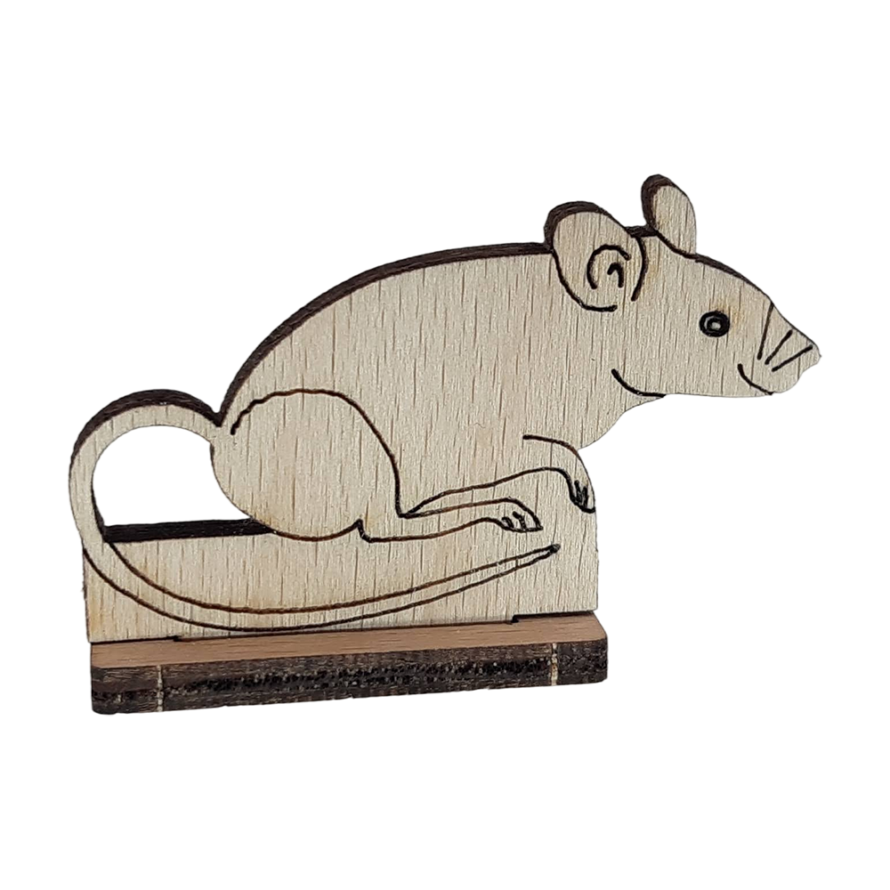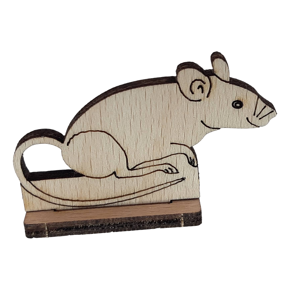 Aufstell- Figur einer MausDie Maus sorgt für großartige Abwechslung. Sie kann mit in den Stall, in den Garten oder auch im Wald platziert werden. Auch als Ergänzung für einen Zoo passt sie perfekt.Sie ist 5 cm breit und wird bereits fertig montiert geliefert.Die Holzteile der Figur bestehen aus naturbelassenem Holz (Buchensperrholz) von möglichst lokalen Produzenten und Lieferanten. Mit der Figur kann bereits ab 4+ Jahren gespielt werden.